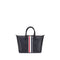 Hammered leather Duffle Small Handbag by Thom Browne features a compact, structured design. Featuring two tubular top handles and a top closure with a double-slider zipper, it provides practicality and security. The iconic vertical colored bands on the front and back add a distinctive and recognizable touch. An adjustable and removable shoulder strap for dual modes of portability and a single internal compartment, ideal for essential organization, complete the model. A stylish and functional accessory, perfect for urban and sophisticated style.