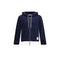 The Thom Browne Hoodie is a garment that combines practicality and iconic style. Featuring an adjustable drawstring hood and front zipper closure, it has two side welt pockets for discreet functionality. Contrasting cuffs and hem add a graphic touch, while the signature patch sewn on the front echoes the brand’s distinctive elegance.