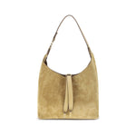 Chloé’s Marcie Shoulder Bag is an elegant accessory crafted from soft suede calfskin. Featuring an essential and refined design, it features an on-top handle embellished with the iconic golden metallic element. The single compartment is designed to hold essentials in style, while the tasseled closure adds a bohemian touch typical of the house.