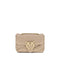 Calfskin Love Baby Shoulder Bag by Pinko, front closure with magnetic button, iconic gold-plated Love Birds logo embossed on the front, quilted and padded design, double internal compartment, sliding chain shoulder strap, iconic brand monogram embroidered tone-on-tone on the back.