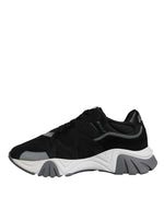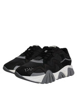 Versace Black Leather Neoprene Chunky Low Top Sneakers Squalo Shoes