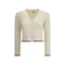 Virgin wool cropped Cardigan by Thom Browne features a V-neck front and button closure. The ribbed design lends a refined, structured look, while adjustable side slits with buttons offer versatility and comfort. The hem and cuffs are embellished with the iconic colored bands, a distinctive symbol of the brand. An elegant and contemporary garment, perfect to enrich any outfit.