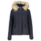 LONG SLEEVED JACKET WITH HOOD AND REMOVABLE FUR, 2 POCKETS, ZIP AND BUTTONS, LOGO